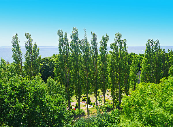 Wie schützende Wächter umsäumen die Pappeln den Friedhof.