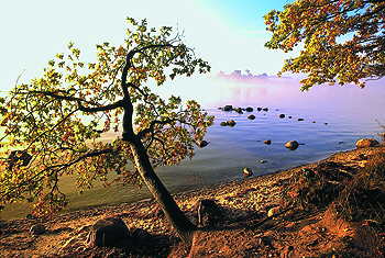 Alt zu werden - wie ein Baum, ist auf Rügen scheinbar nicht erstrebenswert; Küstenschutz ist überflüssig. Weil Stürme die nebenstehenden großen Bäume umwarfen, rückten Motorsägen an und beseitigten diesen herrlichen Windflüchter gleich mit. Einer kleinen, skurrilen Eiche wurde nun, da sie gratis Licht bekam und nicht mehr gezwungen wurde, sich unter dem Blätterdach der Großen ins Licht zu zwängen, der Stamm abgesägt.