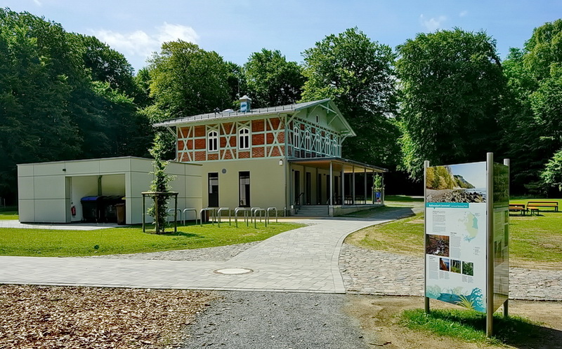 Der Universalbau, der die historische Gaststätte Waldhalle ablöst, ist ein Millionen verschlingender Zweckbau, der seinen Zweck nicht erfüllt. Man wird ihn weder brauchen, noch stark nutzen, noch weiter empfehlen. Das Nationalpark-Zentrum Königsstuhl hätte allemal ausgereicht, sich zu informieren. Den Erbauern dieses "Waldhalle-Kaffee-Ersatzbaues" fiel nichts Vernünftiges ein - und die Bauherren-Ver(sch)wender schlossen sich gleich an.