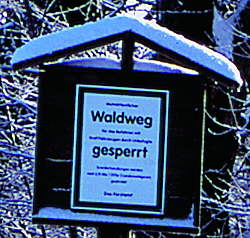 Das Schild deutet an, dass die Zeit der Seeadler begonnen hat und das Betreten streng verboten ist! Kein schweigender Spaziergänger darf seinen Fuß auf diese Waldwege setzen, aber die Langholzwagen dürfen fahren!?