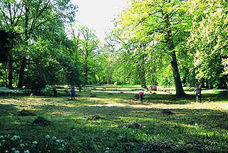 Mitte Mai im Putbusser Park: Eine Armada von ABM-Kräften "muss" den herrlich blühenden Bärlauch mähen. Kommentar der Arbeiter: "Wir haben doch einen Auftrag, das zu tun..." |