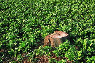 Um diesen Stubben einer gesunden Baumes (!) herum wächst garantiert weder Leberblümchen, noch Anemone, noch Bärlauch. Sie brauchen ein Licht- & Schatten-Refugium ohne austrocknende Erde! |