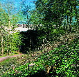 Schlimm ist das, was ein paar Meter unterhalb passierte. Obwohl nun der Aussichtsturm einen herrlichen Rundblick erlaubt, wurde ein ca. 600 qm großer Steilhang - mit herrlichem Buchenwald - abgeholzt. Der Wind kann nun diesen "Lotsenberger-Hang" mit voller Wucht angreifen, so dass absehbar ist, dass bald (durch menschliches Verschulden) die nächsten (im Hintergrund sichtbaren) Bäume fallen!