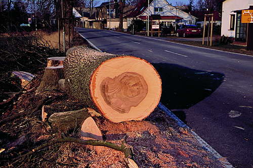 "Die Alleen Mecklenburg-Vorpommerns stehen unter besonderem Schutz!" So lautet unsere Rechtslage, wenn es um Alleen geht - und zahlreiche behördliche Homepages in MV bejubeln diesen Sachverhalt! Gilt es nicht für Rügen? Immer wieder - und in fast allen Alleen Rügens fallen hundertjährige Bäume. Unser Bild zeigt den Ortausgang von Zudar, wo eine gesunde, über 100 Jahre alte Eiche gefällt wurde.