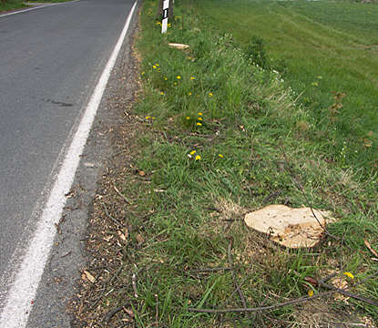 | Das "Herausnehmen" von gesunden Alleebäumen macht auch vor dem hohen Norden nicht halt! Dort wo fast ständiger Wind den Sand und Schnee von den Äckern trägt, wird ohne Rücksicht auf Verluste die Allee ausgedünnt.