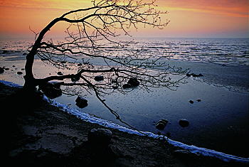 Alt zu werden - wie ein Baum, ist auf Rügen scheinbar nicht erstrebenswert; Küstenschutz ist überflüssig. Weil Stürme die nebenstehenden großen Bäume umwarfen, rückten Motorsägen an und beseitigten diesen herrlichen Windflüchter gleich mit. Einer kleinen, skurrilen Eiche wurde nun, da sie gratis Licht bekam und nicht mehr gezwungen wurde, sich unter dem Blätterdach der Großen ins Licht zu zwängen, der Stamm abgesägt.