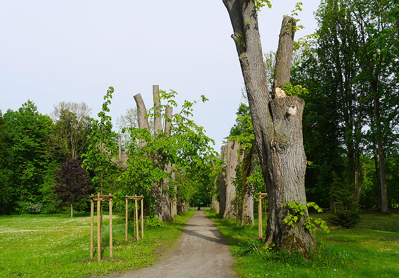 Ich sah durch meine nassen Wimpern eine geköpfte Allee, fern ihrer natürlichen Schönheit und dachte daran, dass zu dieser Zeit ganze Bienenvölker in den riesigen Kronen die Lindenblüten befruchten würden. Ich fragte mich, was sind das für Menschen, die ohne Herz und ohne Verstand, fern jeder Ökologie eine solche Allee köpfen lassen, die in allen kooperierenden Homepages als "lebendiges Denkmal der Park- und Gartengestaltung und zu den wertvollsten Parkanlagen auf Rügen gehörend" beworben wird.