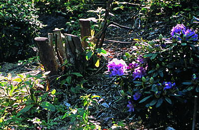 Der Waldweg zum Schloß Semper war alljährlich von Ende Mai bis Anfang Juli ein "Eldorado der Farben" und die Heimat von Hummeln und Bienen, die im umgebenden Wald nur wenig Nahrung fanden. Dann kam ein (Un)Mensch und sägte ca. zwei Dutzend der Stämme des Rhododendron in Kniehöhe ab. Stämme, die bis 15 cm stark waren, - und nun an einigen Stellen verzweifelt versuchen, wieder Blattwerk zu treiben. Angeblich unter "Schneelast" zerbrochen - und nun (von der Landrätin und Sponsoren neu angepflanzt), feiert man die "Auferstehung" und klopft sich gegenseitig auf die Schulter!